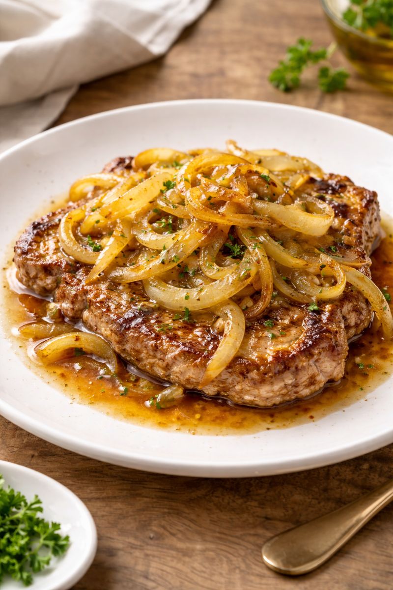 PopularJugoso, dorado y lleno de sabor. Láminas de cerdo tiernas se cocinan lentamente con abundante cebolla caramelizada y un toque de sazón criolla, creando un plato aromático, reconfortante y perfecto para acompañar con arroz y viandas.