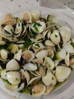 Almejas salteadas en aceite de oliva, ajo y perejil fresco