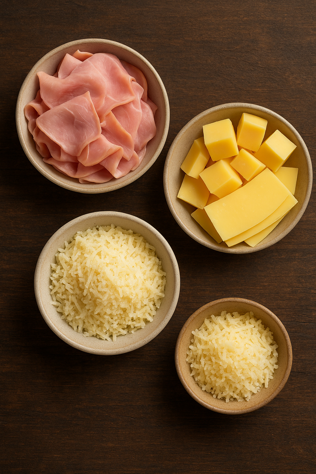 Queso gouda cremoso, parmesano aromático y jamón de sabor suave se combinan para elevar cualquier plato. Ingredientes frescos y llenos de carácter que añaden textura, intensidad y un toque irresistible a tus pizzas y pastas favoritas.